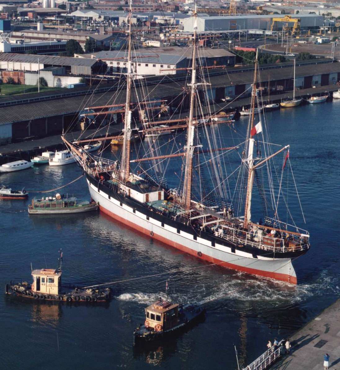 Polly Woodside The iron barque Willowmere is based upon Melbourne's magnificently restored Polly Woodside. Here's an image of Polly, probably taken in the 1990s. Click for a larger version and note the sizes of the people watching. (Then see my page on the four-masted vessels for a comparison with ships like my fictional four-masters Culardoch and Inverley.)